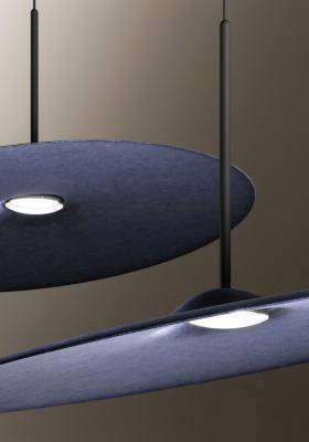 Allier lumière et acoustique est possible grâce à ces suspensions qui se déclinent en différentes tailles et coloris.