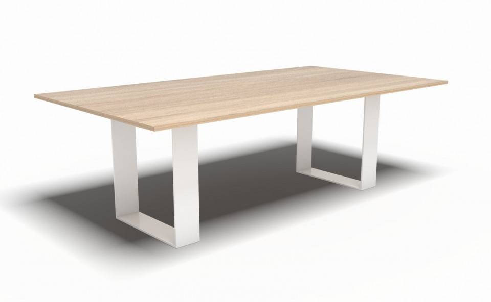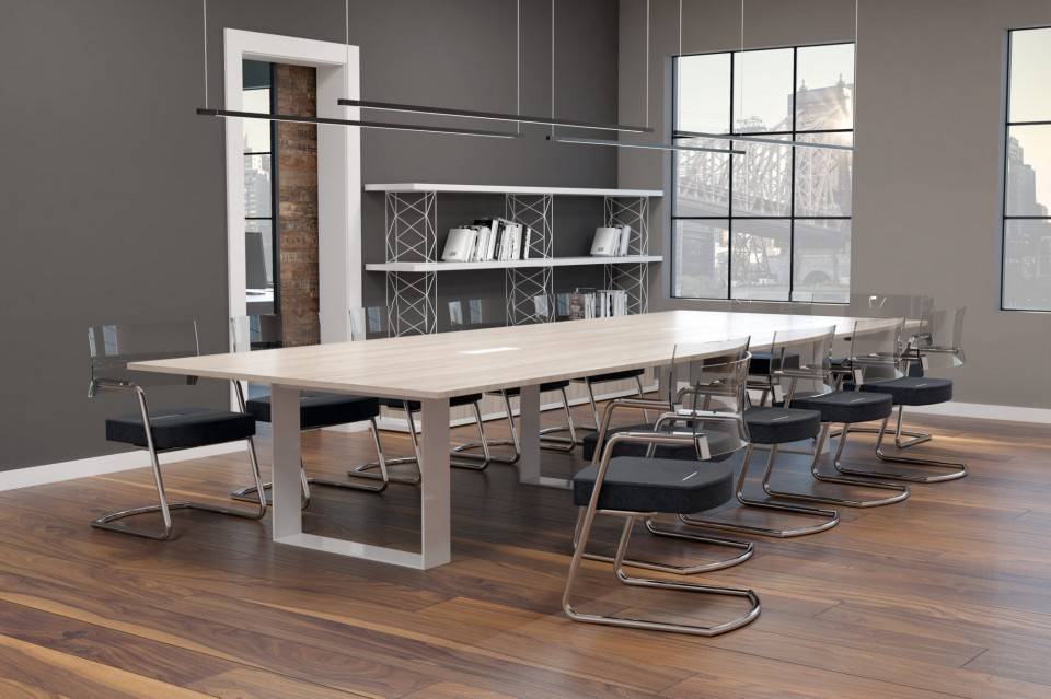 Table de réunion de style contemporain avec piètement fermé extra-plat.