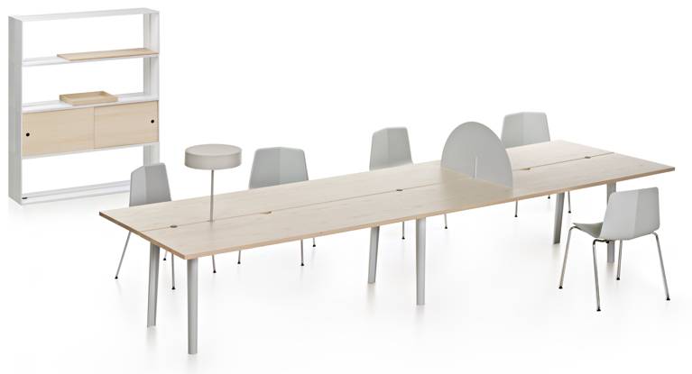 La principale caractéristique de cette série de table bureau est d’avoir sa surface divisée en deux dans la longueur, ce qui permet une utilisation plus effective de l’espace de travail. L’interstice permet le passage de câbles, sert de support pour l’éclairage, le positionnement de séparateurs ainsi qu’une multitude d’accessoires.